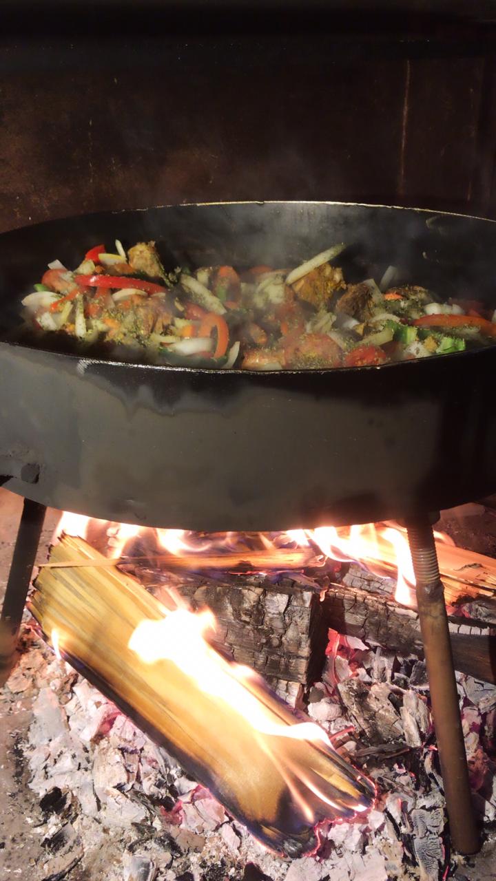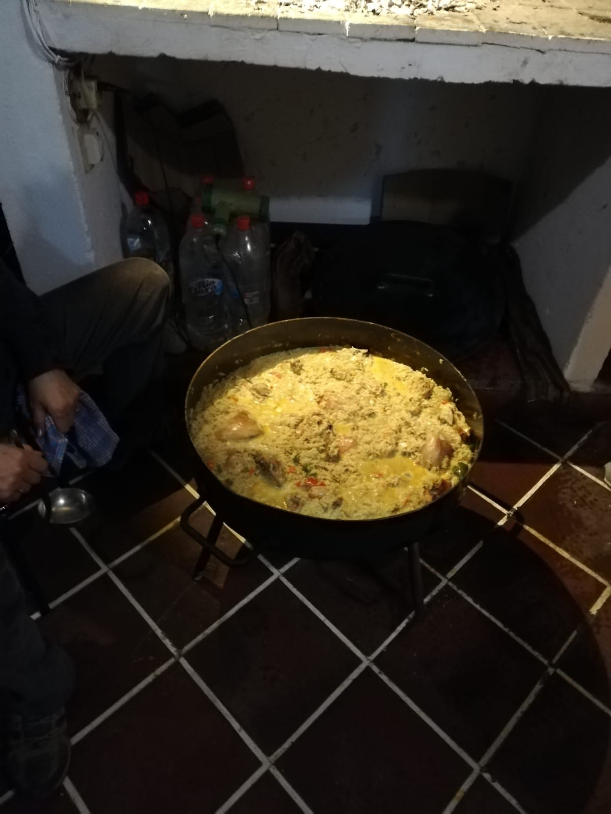 Well anyways, the purpose of making the cookies was because I was going to the Echevarria’s house for dinner with some pals from the church for “pollo al disco”. Pollo al disco, as it turned out, was basically this huge wok (wok? woc? Wock? Whock? What even is this implement. Also why’s it even called a wok/woc/wock/whock?) -i was going to say cauldron for the lolz but that wouldn’t quite be accurate – over a blazing fire outside with all of the yummies in. Chicken, rice peppers etc. Well anyways, I was faintly relieved that it was just chicken and no dancing was to be involved. When I read the message about it saying “would you like to come for pollo al disco” I was like, surely it’s not gonna be chicken then dancing 🤔 anyhow, it was super super super yummy! 😋 and we had cookies for pudding 😋
