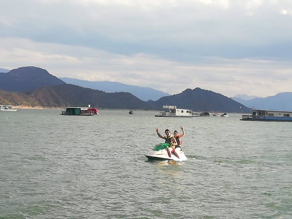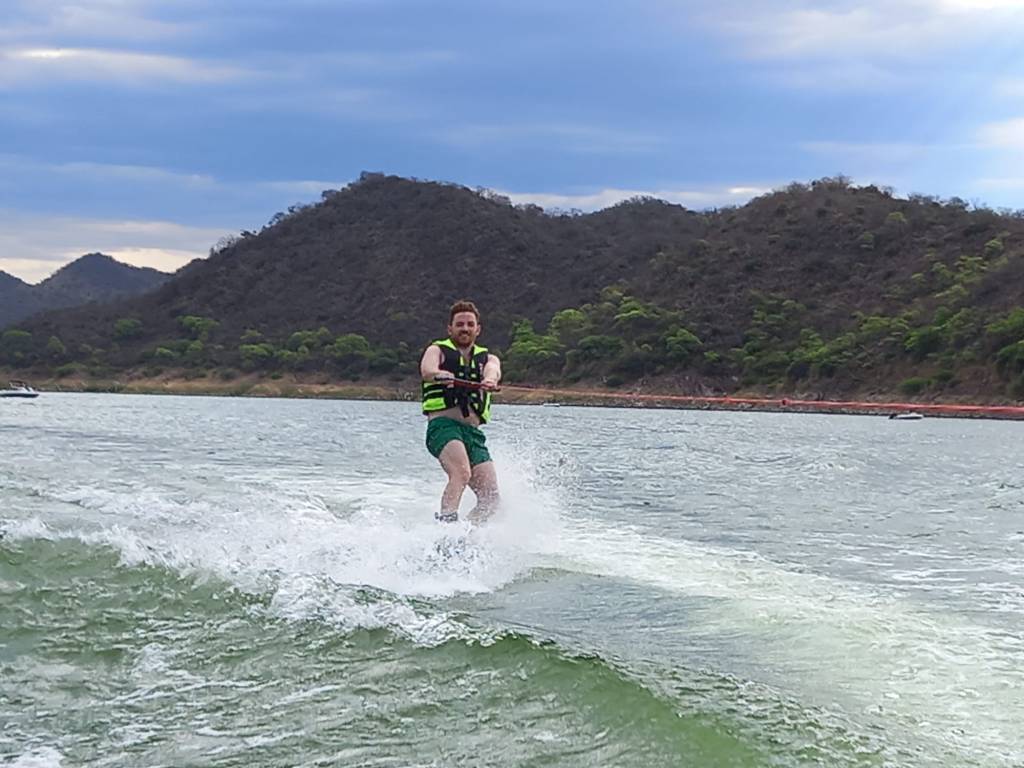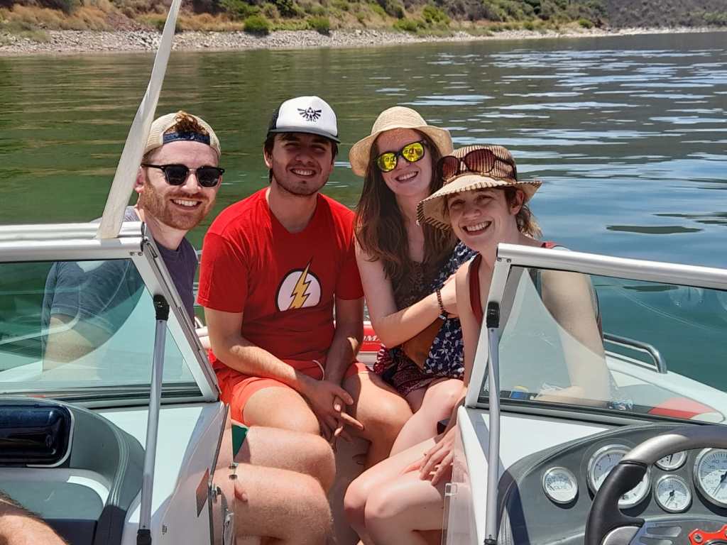 The next day we went off to the lake to do wakeboarding. All 4 of us- me, Nolz, Amy & Tim- had a go and in fact, everyone managed to do it! Which is always very satisfying for the whole boat load of people when someone new manages to do it! The hardest part is getting up so once they’d got that we were away! After lunch we also got the jet ski going which Noly accompanied Amy and also Auntie Ray on it! It was quite amusing to see Noly and Auntie Ray whizzing around the lake on the jet ski but she had a marvellous time!
