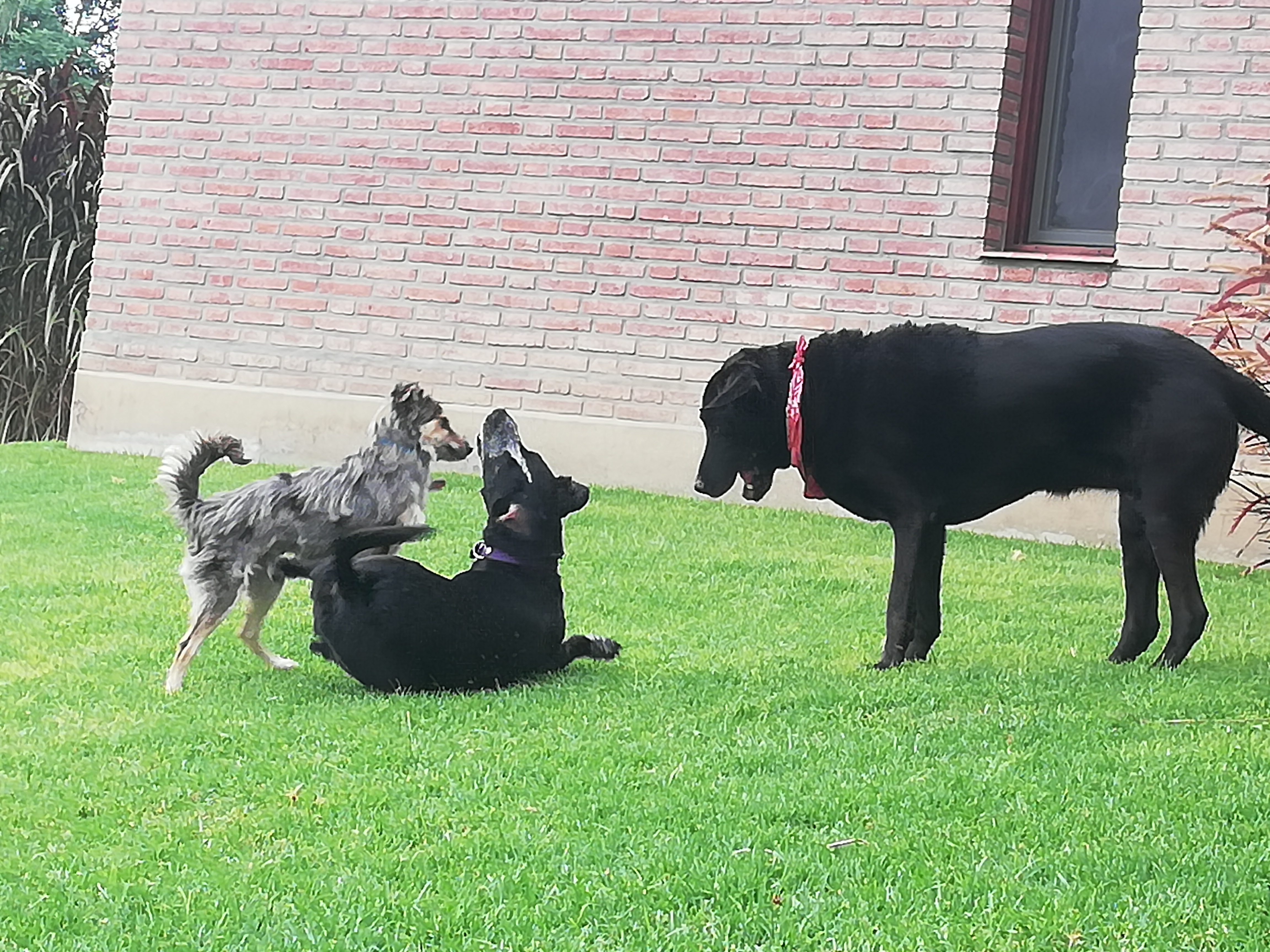 Now she’s so much better! We’re slowly trying to get her used to us going out and not being with her constantly and it’s so lovely to see her progress! Slowly going further away from me, into the gallery area, into the garden for a few seconds (before swiftly coming back in), but each day going out for longer. Slowly getting more interested in her surroundings. Discovering a love for playing fetch with tennis balls which seems entirely insatiable! And now, that she’s feeling a lot more comfortable, annoyingly she seems to have developed a love for chewing wood, cables and my hands! (The latter in a playful way when she’s hyper and wants to play. She’ll stop if I tell her to, don’t worry!) And the other lovely thing to see if her interacting with other dogs. When we first went to Noly’s rents and left her in the gallery with Lola and Dona, she was completely on guard, watching our every move through the window and would not interact with the other doggy pals unless we were present. The second we stepped outside and encouraged her to play, off she went. Then, when we returned inside, she came back to her post and watched us inscrutiably. Now, however, it’s lovely to see that she does go off and play with them! She would still like to be with us and will appoint herself guard duty some of the time, but the other lot of the time she will play or be away from the door. She’s also at war with the dog next door and loves a good bark, even when he doesn’t even seem to be there!